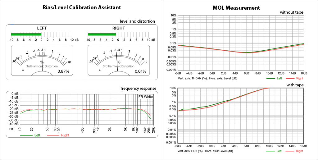 | This feature compares pre- and post-tape audio signals in real time and shows the deviations on the time line (works only with a 3-head tape recorder with off-tape monitoring feature). | |||||||||||